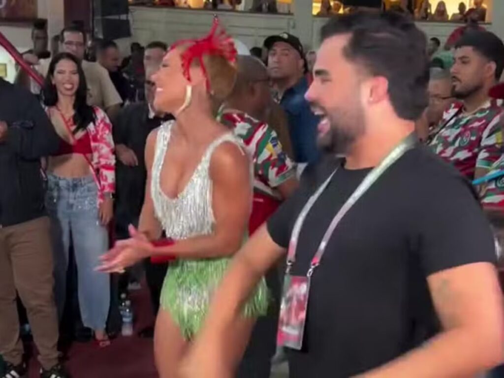 Nas imagens que circulam nas redes sociais, os dois aparecem sorrindo, acompanhando a bateria da escola de samba e interagindo de forma natural. A aparição gerou comentários positivos dos fãs, que comemoraram o reencontro público e o clima leve entre os influenciadores.